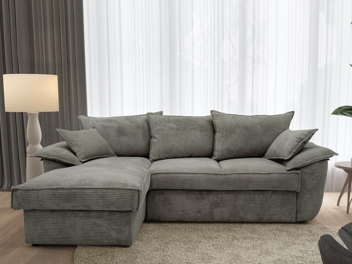 Sofá Cama VENTE-UNIQUE (257 x 168 x 88 Tamanho Cama: 140 - 159 cm - Veludo - Cinzento)